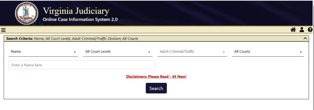 - Open the official portal – Visit https://www.vacourts.gov/caseinfo/home.html.